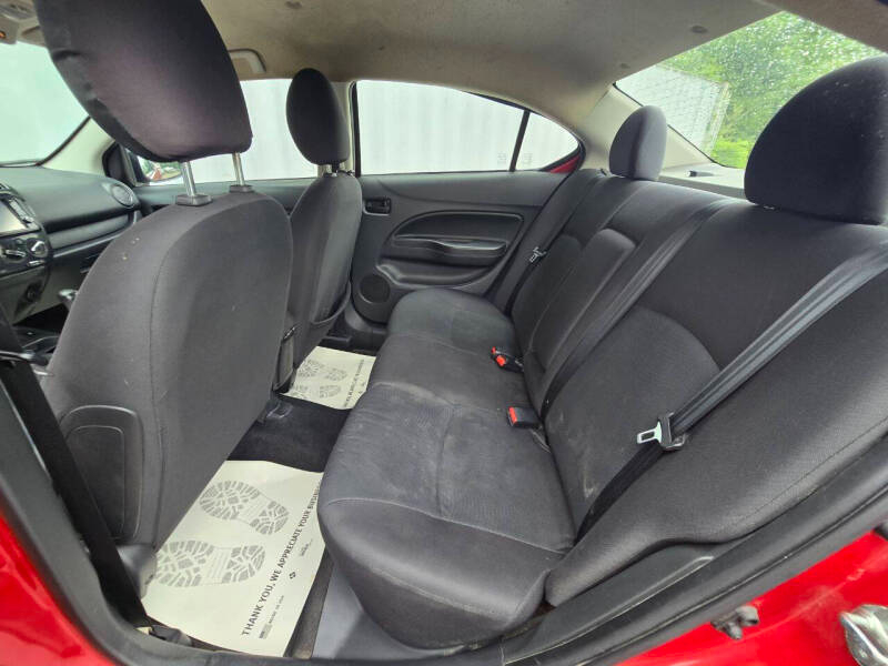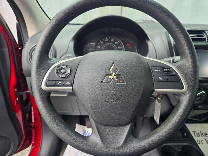 Step into the future with this sleek and stylish 2019 Mitsubishi Mirage G4 in striking Infrared Metallic. This eye-catching sedan not only turns heads with its vibrant color but also provides peace of mind with its numerous safety features. Whether it's the child safety door locks, vehicle anti-theft system, or the array of airbags ready to deploy in case of an emergency, this Mirage G4 has you covered.