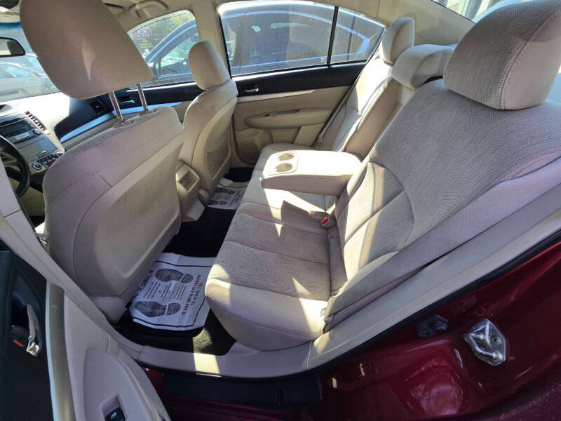 Embark on your next adventure in style with this sleek Burgundy 2013 Subaru Legacy! This reliable sedan is the perfect blend of comfort and performance, making every drive a memorable experience. Whether you're cruising through the city streets or tackling rough terrains, the 4WD/AWD system will keep you steady and secure. Safety is always a top priority with the array of airbags and stability control systems in place to protect you and your loved ones.Convenience is key with features like keyless entry, cruise control, and power windows to make your drive as effortless as possible. The automatic headlights and daytime running lights ensure visibility is never an issue, no matter the time of day. Plus, with the available Carfax report, you can have peace of mind knowing the vehicle's history.